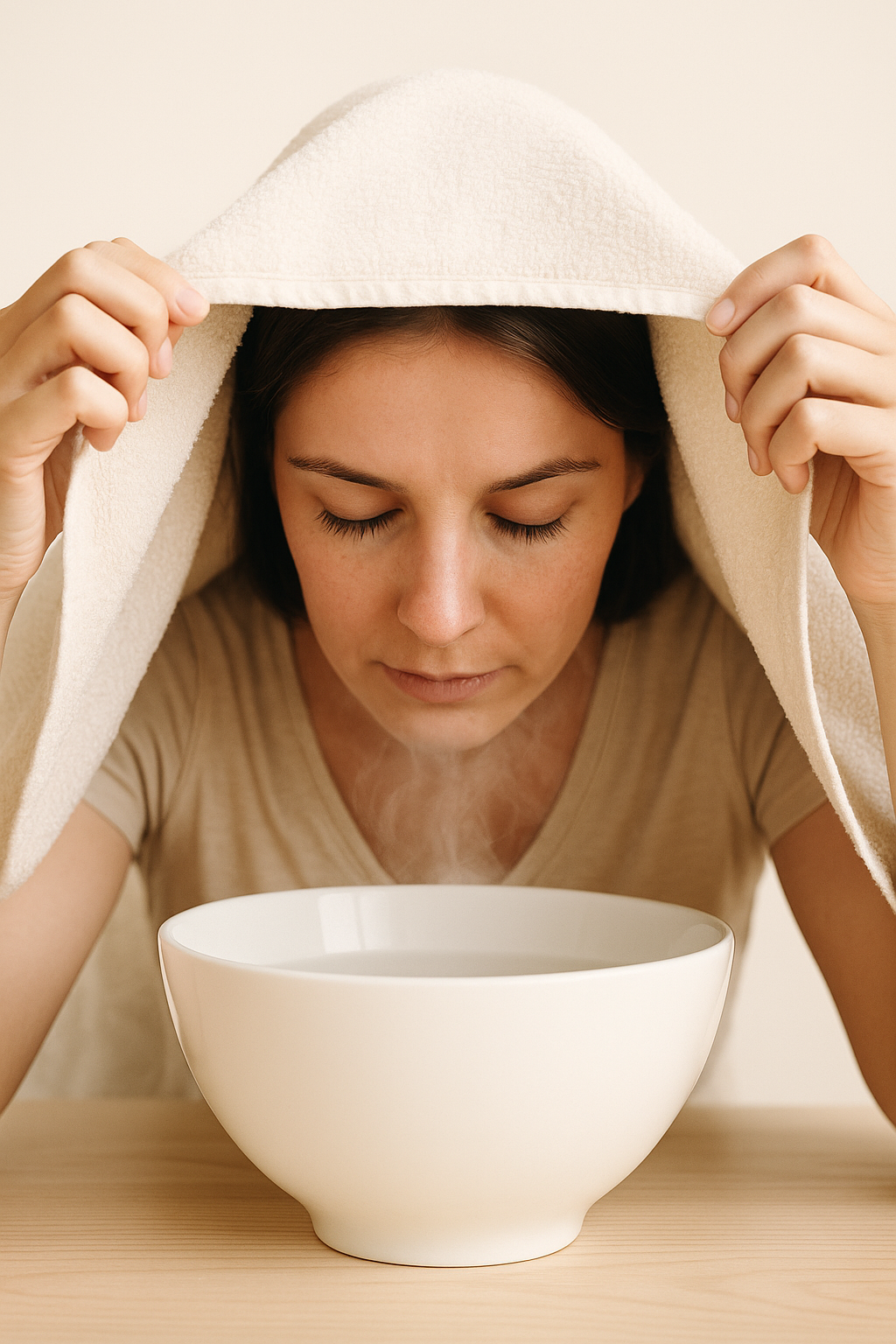 A pure, undiluted essential oil blend to breathe deeply and enjoy a refreshing, comforting atmosphere with a custom steam inhalation blend.